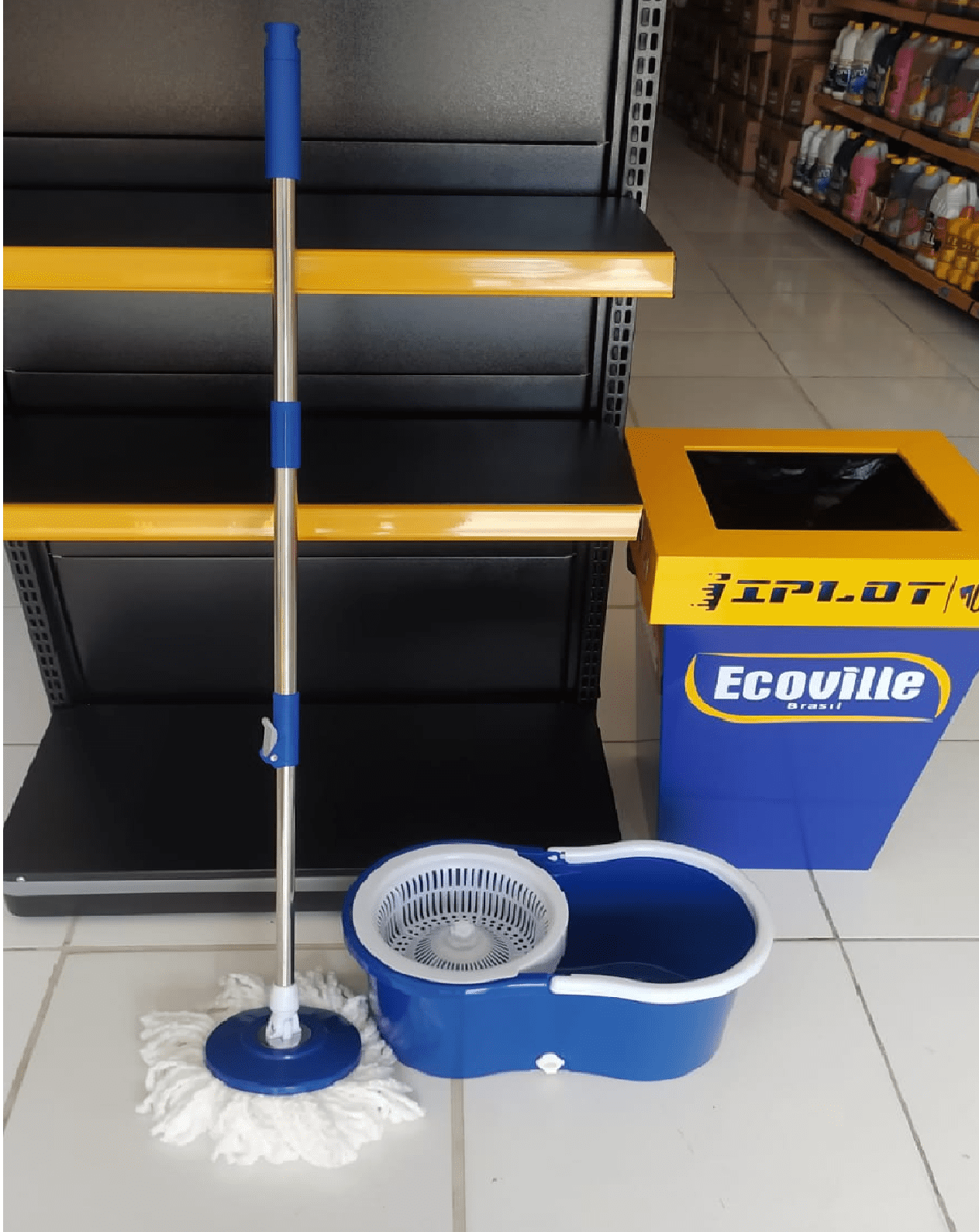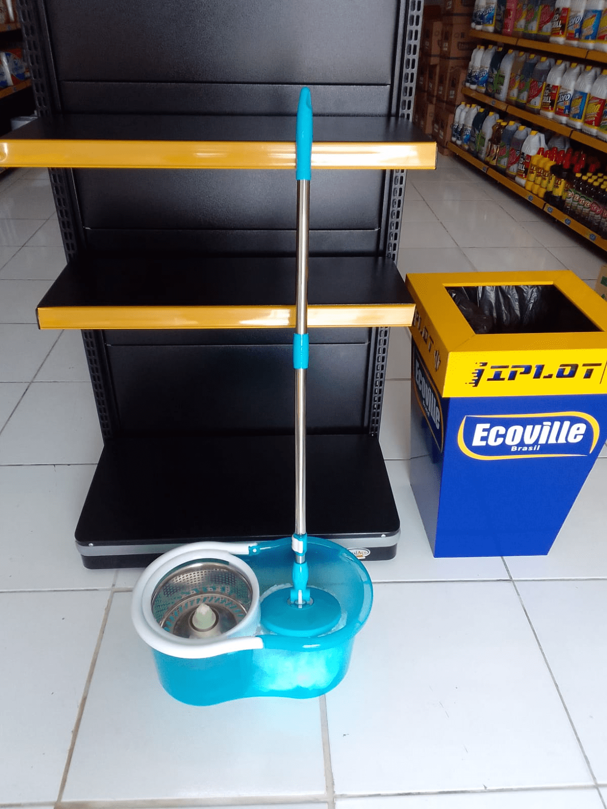 Mop giratório, contém balde com capacidade para 12L. Possui cabo metálico de 109 cm. Pano 100% Microfibra.