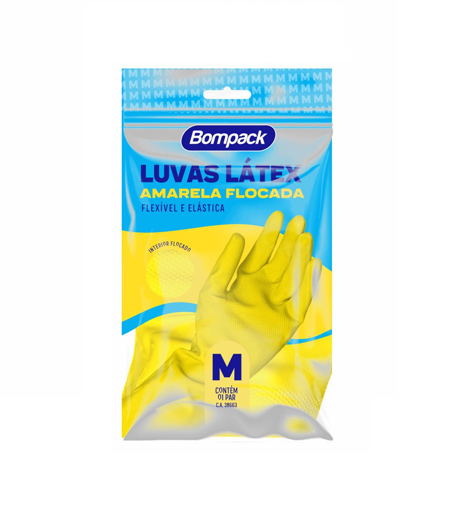 Luva Látex Amarela flocada.