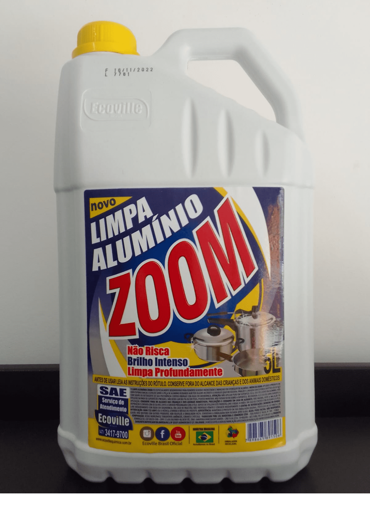 Remove sujeiras incrustadas e manchas em utensílios de alumínio. Não risca a superfície do alumínio e renova o brilho.